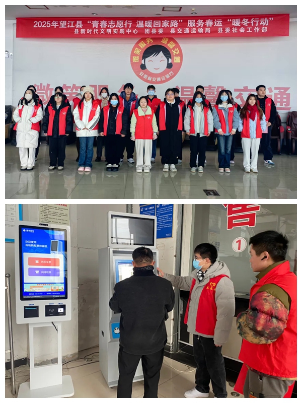 2025年1月14日,春運(yùn)首日,望江縣客運(yùn)中心站協(xié)助縣新時(shí)代文明實(shí)踐中心、團(tuán)縣委、縣交通運(yùn)輸局及縣委社會(huì)工作部,共同發(fā)起“青春志愿行 溫暖回家路”為主題的“暖冬行動(dòng)”;顒(dòng)旨在為春運(yùn)旅客,特別是老幼病殘?jiān)械忍厥馊后w,提供全面服務(wù)。