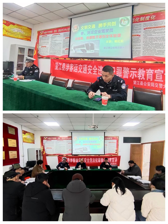 為深入貫徹落實道路交通安全專項整治行動部署要求,切實強(qiáng)化客運企業(yè)源頭安全管理,3月13日上午,望江縣交警宣教部門聯(lián)合望江客運分公司開展涉客運交通安全違法犯罪警示教育宣講活動,分公司安全管理人員積極參與。