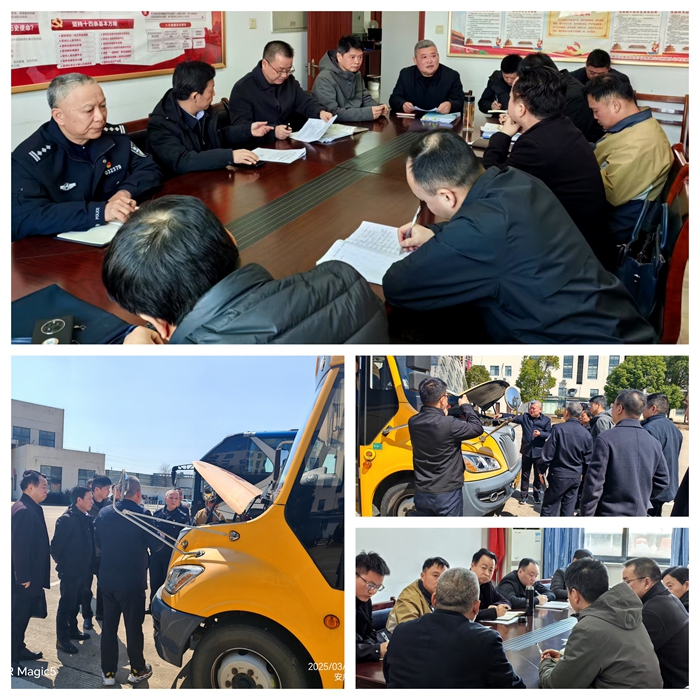 為深刻汲取淮南“2·27”校車事故慘痛教訓,消除安全隱患,2025年3月17日上午,安慶市校車聯(lián)席會議安全檢查組一行四人到童安校車服務分公司開展督導檢查,桐城市教育局局長疏波、桐城市教育局黨委委員吳瀾、桐城市交警大隊副大隊長汪夕亮,桐城市道路運輸管理中心副主任汪郁陪同檢查。