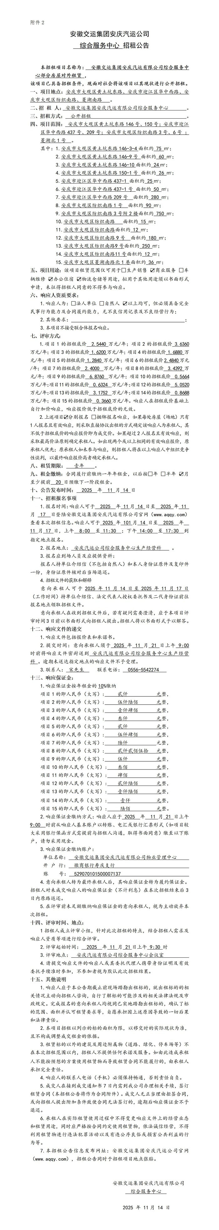 綜合服務(wù)中心招租公告