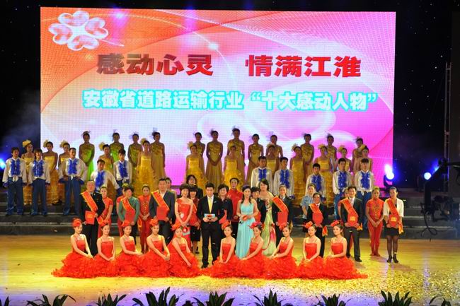 會(huì)議期間舉辦了"十一五"期間全省道路運(yùn)輸行業(yè)"十大感動(dòng)人物"頒獎(jiǎng)晚會(huì),運(yùn)用視頻短片等形式對(duì)獲獎(jiǎng)?wù)叩南冗M(jìn)事跡進(jìn)行了宣揚(yáng),F(xiàn)場群眾觀看著大屏幕上獲獎(jiǎng)?wù)叩母腥耸论E,聆聽著獲獎(jiǎng)?wù)叩臉銓?shí)話語,一次次用雷鳴般的掌聲表達(dá)了敬佩和感動(dòng)之情。他們的典型事跡,集中展示了道路運(yùn)輸人的風(fēng)采,唱響了時(shí)代的主旋律,在群眾中引起了強(qiáng)烈的共鳴。省交通運(yùn)輸廳梅勁廳長、丁慶領(lǐng)副廳長及滁州市相關(guān)領(lǐng)導(dǎo)為"十大感動(dòng)人物"頒發(fā)了獎(jiǎng)杯。